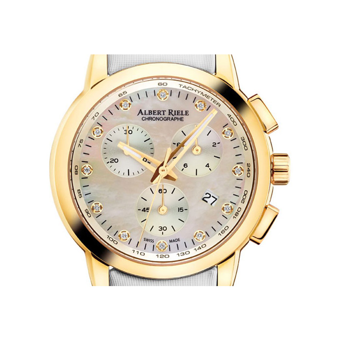 ساعت مچی عقربهای زنانهی «آلبرت ریله» (Albert Riele) مدل «LQ03-SY99D-TW-K1513» از ساعتهای بسیار شیک و لوکس این برند سوییسی است. این ساعت کلاسیک، ویژگیهای جذاب و البته کارآمدی دارد که زیبایی ساعت را دوچندان کرده است. یکی از این ویژگیها کرنوگراف یا زمانسنج است که با دو کلید سمت راست کنترل میشود و به موجب آن دو شمارشگر روی صفحه تعبیه شده است. ویژگی دیگر این ساعت بهره بردن از قابلیت سرعت سنج (تاکي متر) است. تاریخشمار هم دیگر قابلیتی است که در کنار زیبایی، کارایی بسیاری دارد و شمارهی روزِ ماه را روی صفحهی صدفی ساعت و در موقعیت عدد چهار به تصویر میکشد.